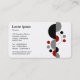 A business/profile card template with an abstract motif made up of crescent shapes and circular spots. Company name and business type on the front balanced with the motif on the left. Name an all other contact on the reverse with the motif on the right. Ready to be customized with your details, suitable for many types of business.