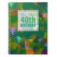 Beautiful abstract background (aqua, turquoise, purple and green colored squares) with a half-transparent white square tag (tiny transparent border) for name, date and birthday. All is customizable for this 40th birthday guest book.