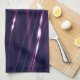 This kitchen towel features an abstract purple digital graphic design.