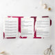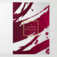 Deep, ruby red painted brushstrokes create an abstract backdrop on this customizable tri-fold brochure. Your name or business name is displayed in a faux gold box on the front for a modern aesthetic. Update the customizable text to fit your brand, and personalize the details throughout the brochure for your own usage. These 5x7 brochures are the perfect size to display your price lists and menu of services, or describe your product line. A great marketing piece to hand out to potential clients to quickly introduce your business. Please contact the designer for help with special typesetting or layout variations. Art and design © 1201AM Design Studio | www.1201am.com