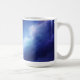 Coffee mug featuring an abstract deep space design inspired by imaginary nebulae, blending dark blues, violets, and soft celestial highlights.