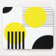 Abstract design illustration with geometrical (circles and stripes) shapes decoration in yellow and black colors on white background.