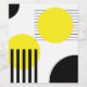 Abstract design illustration with geometrical (circles and stripes) shapes decoration in yellow and black colors on white background.