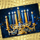 Abstract Drawing Menorah Happy Hanukkah Gold Blue Foil Holiday Card