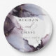 WEDDING PARTY PAPER PLATES | Modern Abstract Dusty Amethyst wedding motif. Moody and ethereal , this beautiful hand painted watercolor illustration in shades of deep mauve purples with gold fleck highlights - Hand written script calligraphy is combined with a minimalist, contemporary style font. A trendy and modern look for all seasons. This is part of a wedding stationery collection with matching wedding accessories. © WhimsicalArtwork created for the BarefootBride™