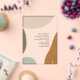 Abstract paint shapes with colors inspired by moss, blush, rust, and sky.