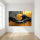 Our painting mesmerizes with its abstract interplay of black and gold brushstrokes, softened by gray washes. This dynamic composition exudes luxury and elegance, blending contemporary style with opulence in a captivating, fluid design.
