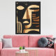 Make a bold statement with this abstract face design, blending geometric shapes and expressive lines in black, gold, and beige. A perfect piece for modern interiors or artistic fashion lovers.