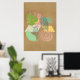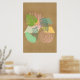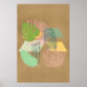 Trendy, wall art design features abstract elements of nature (leaves, feather, flower) on kraft brown background