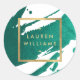 Dark, emerald green paint brushstrokes create an abstract backdrop on this personalized sticker design. Your name or business name is displayed in a faux gold box for a modern aesthetic. These stickers are great to use for sealing envelops or packages, to use for product or candle labels, or for personalizing office supplies. Art and design © 1201AM Design Studio | www.1201am.com
