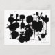 A post card with an abstract expressionist design consisting of big bold blots and thinner lines all fitting together with classical harmony.