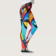 These bright, colorful leggings were designed with my original collage art featuring a cool abstract face with big bold eyes, neon pink cheeks and vibrant red lips in a grungy, fun modern graffiti style purple background with a whimsical touch of black and white stripes.