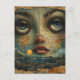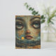 Abstract Face Blue Eyes Grunge Beach Postcard