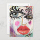This bright, colorful postcard was created with my original collage art featuring a cool abstract face with big bold eyes, neon pink cheeks and vibrant red lips in a grungy, fun graffiti style purple background with a whimsical touch of black and white stripes. These little works of art are not only great to send through the mail, they are also an inexpensive way to collect all the pieces you love and look great framed and matted.