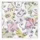 Faces, ears, fingers are doodled loosely on top of abstract blobs of color that run from the pinks and oranges to browns and yellows. This colorful human outline is set against a refreshing white background, giving it a crisp and modern appearance.