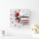 Abstract face in red square wall clock