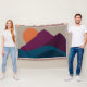 A beautiful abstract illustration of a mountain landscape and sunset using Autumn Fall color tones derived from nature. Color tones include burgundy, orange, deep blues and beige. A rustic design ideal for Fall Autumn and Winter home decor, Thanksgiving decor and gifts.