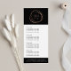 Elegant rack card design displays your services, price list or business information beautifully. Design features a faux rose gold abstract circle logo on a black background, framing your name and/or business name. Includes four customizable headings and body text fields, and space for your business contact information along the bottom. To adjust layout, enter your text and then use the Customize function to change positioning and font sizes.