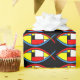 A fish symbol with blocks of color is a unique graphic design for fish lovers, and cooks at birthdays and holidays.