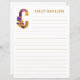 A fun and funky abstract floral design featuring letters of the alphabet. Lined paper is ready to write.