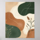 This digital art print features a minimalist abstract design with a soft color palette of cream, brown, and green. The background is a cream color with overlapping organic shapes in shades of brown and green. Delicate, stylized floral elements are drawn in gold on the left and right sides of the print, adding a touch of nature to the abstract composition.