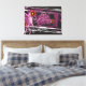Orange flowers on a splattered purple and black background gives a grunge effect to a pop style canvas artwork