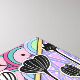 The image features an abstract floral pattern with various stylized flowers, set against a colorful geometric background divided into distinct sections with different shapes and colors, creating a striking contrast and visually engaging composition.