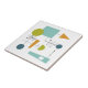 This fabulous mid century modern ceramic tile features squares, circles, triangles, and lines in the colors of turquoise, orange, green, blue, and black - just like a flowchart! This will make a funky addition to your tiling project. It's also great for those who love graphs and charts.