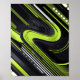 A futuristic abstract artwork with bold green, black, and white flowing lines combined with sleek geometric shapes. The curved stripes give a dynamic sense of speed, energy, and modern digital style, making it ideal for tech themes, gaming designs, or contemporary backgrounds.