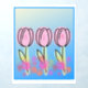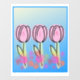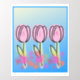 Pretty pastel colored monogram initials design, perfect for a tween girl's bedroom door, a teen's wall above their desk, or perhaps a daughter's dorm room. This modern bright colorful floral girly pattern is in pastel pink, blue, green and orange has 3 tulip flowers in bloom. On the petals of each of the flowers in this floral pattern is an initial for a custom monogram letter. The design has a sky blue colored backdrop.