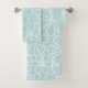 Abstract Flowers White on Duck Egg Blue Bath Towel Set