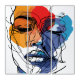 This striking artwork, "Abstract Fluid Line Face Art," is a modern representation of human expression through abstract forms and vibrant color combinations. The piece portrays a face drawn with fluid, flowing lines that capture both motion and emotion. The lines, seemingly spontaneous and dynamic, curve and intertwine to form the facial features while leaving some elements open to interpretation. The deliberate use of abstract shapes and splashes of color creates a unique visual experience where the orange, red, and deep blues offer a balance between warmth and coolness, symbolizing a range of emotions.