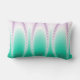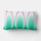 Lumbar pillow features abstract fractal pattern in colorful pastel purple and green gradient.
