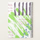 This abstract pattern planner features bold brush strokes and marker lines in fresh greens, blues and purple. Personalize with your name and own planner title in bold black modern typefaces. To change typefaces or color, use the customize further tab.