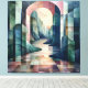Add sophistication to your decor with this abstract geometric masterpiece. Featuring a towering archway framing a serene river winding through layered mountain peaks, the composition blends soft pastel hues with bold structural forms. The harmonious interplay of light and shadow creates depth and intrigue, making this artwork perfect for modern, minimalist, or boho-inspired interiors. Ideal for art lovers seeking innovative designs that evoke both tranquility and wonder, this canvas transforms walls into stunning focal points.