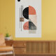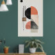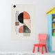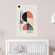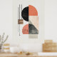 This striking mid century style wall art features a harmonious composition of geometric shapes that are visually balanced but not symmetrical. Created through AI design, it blends dynamic, freeform shapes with natural textures like wood and the sea, offering a fusion of modern abstraction. Subtle color shading enhances each shape, adding depth and a visually pleasing aesthetic.