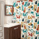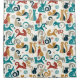 Geometric cats in a pleasing palette of turquoise and goldenrod on an off-white background.