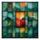 This bold abstract geometric art print features a vibrant red and orange color block at the center, framed by a soft green and teal grid. The intricate geometry and dynamic contrast of colors create a unique and modern design, perfect for enhancing any living or office space. Ideal for lovers of abstract and geometric art, this piece adds a vibrant yet balanced aesthetic to any room.