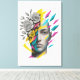 Elevate your space with this stunning Split Face Geometric Minimalist Wall Art. This unique canvas print features a captivating abstract portrait split between sharp geometric shapes and a classic black and white floral pattern.