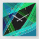 Abstract, geometric , green , blue , black square wall clock