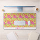 This eye-catching desk mat features an abstract geometric pattern made of magenta pink and chartreuse green square tiles. The focus of this design is the unique watercolor effect that is created by the colors which are blended together. To provide a touch of personalization, there is a white band at the bottom of the mat with your name printed in the center. This mat will be the ideal addition to any desk in need of a splash of color and a unique look.