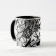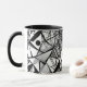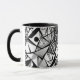 This is a Habatour Creations coffee mug, filled with an authentic modern abstract geometric digital pattern design in grey shades