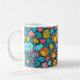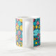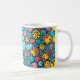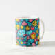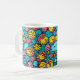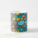 This is a Habatour Creations mug, decorated with an authentic modern abstract geometric digital pattern design with cute faces