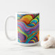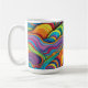 This is a Habatour Creations coffee mug, filled with an authentic modern abstract geometric digital pattern design with wavy lines
