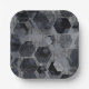 Abstract geometric textured pattern, black and gray background. Black, gray geometric shapes, honeycombs on a light gray striped background.