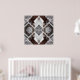 This striking abstract design blends urban architecture with natural elements in a mirrored geometric layout. Snow-covered tree branches intersect with blurred red brick buildings and windows, creating a dynamic kaleidoscopic effect. The muted tones of gray, brown, and white evoke a wintry cityscape, while the symmetry adds balance and modern sophistication.