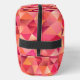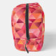Modern, monogrammed backpack featuring a fun and cool abstract geometric pattern of wavy triangles in shades of red, orange, pink and yellow gold personalized with a monogram in your choice of font styles and colors or delete the monogram and frame if not desired in EDIT. ASSISTANCE: For help with personalization or if you would like coordinating items, contact the designer BEFORE ORDERING via the Zazzle Chat MESSAGE tab or email makeitaboutyoustore@gmail.com.