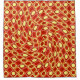 Abstract geometric pattern in red and yellow tones, with a swirl effect.