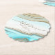 This design set, with it's abstract pattern of flowing ripples and veins of glittering gold, brings to mind eye-catching rock formations, flowing sand dunes, and gentle ocean waves. The striking colors of sea and sand for this set adds to the appeal. The coordinating paper coaster shown here has an abstract background holding optional text of 'Cheers to the happy couple' along with your names and wedding date. Search ID903 to see other color choices and coordinating pieces for this unique wedding collection.