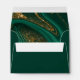 This wedding design set, with it's abstract pattern of flowing ripples and veins of glittering gold, brings to mind eye-catching rock formations and sparkling gems. The jewel-toned color palette in shades of emerald green adds to the appeal. The coordinating envelope shown here has all the above with an abstract interior and optional dark green exterior. Easily add your initials and address using the provided template. Search ID903 to see other color choices and coordinating pieces for this unique wedding collection.